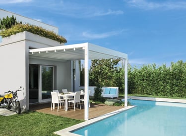 Pergola bioclimatique, pergola à toile rétractable ou Pergolife: profitez d’un extérieur protégé, confortable et valorisé toute l’année, avec des structures conçues pour durer.