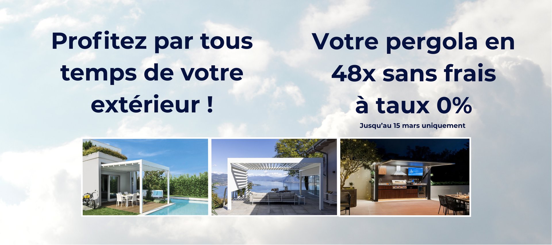 *Pour une pergola : dimension 4x4, hors : option, pose, livraison, sous conditions de souscrire à l'offre garantie extension 10 ans. Offre soumise à condition