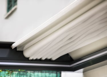 Structure en aluminium dotée d'une toile rétractable, soutenue par des traverses robustes, notre pergola offre une protection optimale en toute saison. Grâce à un système d’ouverture motorisé ou manuel, selon les modèles, la toile s’adapte à vos envies pour moduler ombre et lumière au fil de la journée.