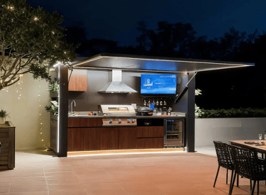 La cuisine extérieure de jardin transforme votre extérieur en véritable espace de vie, utilisable toute l’année et à toute heure de la journée. Plus polyvalente et plus utile qu’un pool house, la cuisine extérieure valorise votre extérieur et apporte une vraie plus-value à votre habitat. Un lieu unique pour cuisiner et partager.