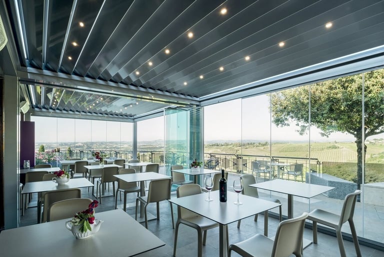 • Murs de verre coulissants — Fermez les côtés sans perdre la luminosité, vitrage feuilleté sécurit
